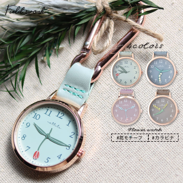 時計 レディース フルカ お花 花 フラワー カラビナ キーホルダー チャーム お花好き 送料無料 プレゼント プチプラ 20代 30代 お手頃 フィールドワーク