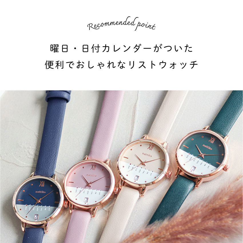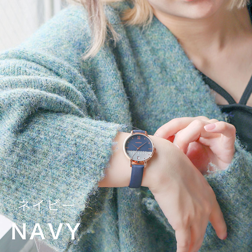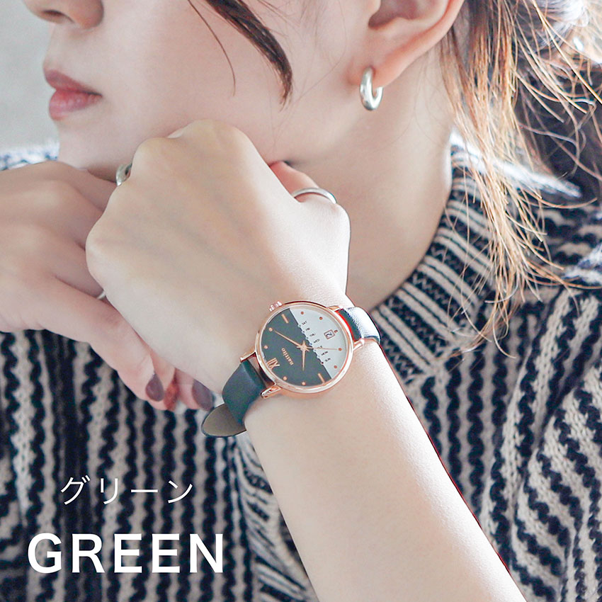 腕時計 レディース ダリオ 革ベルト カレンダー 日付 曜日 デイデイト バイカラー 見やすい 大きめ 通勤 通学 トレンド オススメ プチプラ フィールドワーク