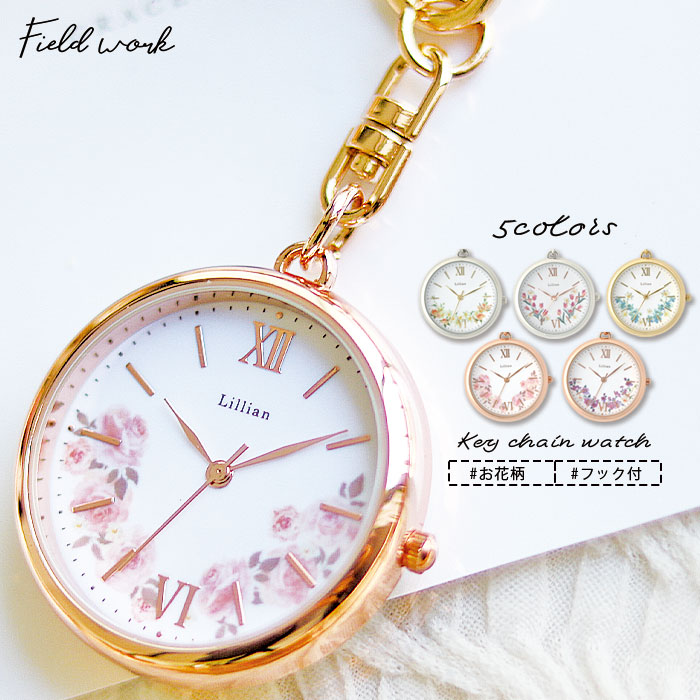 腕時計 懐中時計 ブリュレ 花柄 フック お花 フラワー 見やすい かわいい おしゃれ バッグチャーム フィールドワーク 20代 30代 お手頃 安い 日本製ムーブ