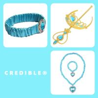 アラジン ジャスミン ドレス コスチューム 豪華7点 セット (ドレス上下, ヘアバンド, ハートの ティアラ , 魔法のステッキ, ネックレス, ブレスレット)