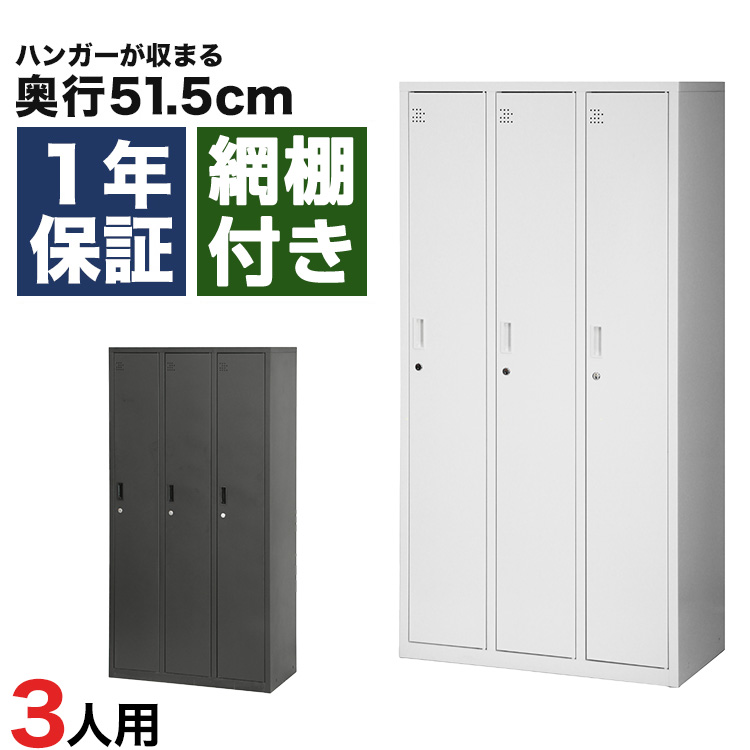 スチールロッカー 3人用 オフィス 更衣室 鍵付き 3列 ホワイト 白 ブラック 黒