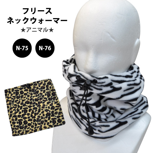 ネックウォーマー 防寒 アニマル柄 メンズ レディース キッズ 即日発送可 N-75/76 フリースネックウォーマー 寒さ対策 3WAY メール便対応