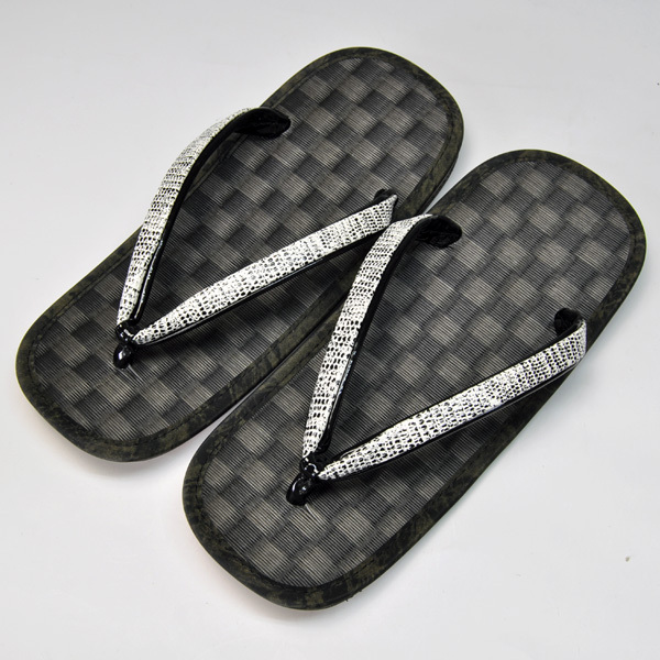 雪駄 メンズ オシャレ Lサイズ 黒畳 鼻緒半月トカゲ 牛本皮底 701 お祭り 和装 和装小物 カッコイイ 粋