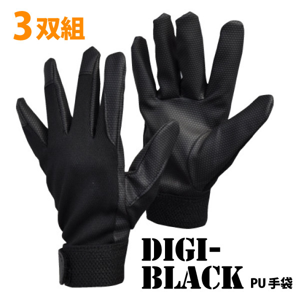 作業用手袋 合成皮革手袋 M-LLサイズ 富士グローブ DB-123-3 PU手袋デジブラック 3双組 お買い得 アウトドア レジャー メール便対応