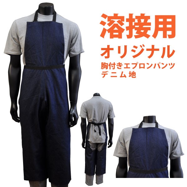 溶接用 胸付きエプロンパンツ ITO-002 オリジナル デニム地 フリーサイズ 溶接作業