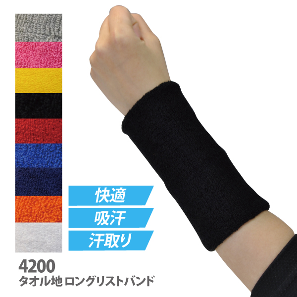 リストバンド タオル地 メンズ レディース 即日発送可 4200 ロングタイプ アウトドア レジャー スポーツ 作業 イベント メール便対応