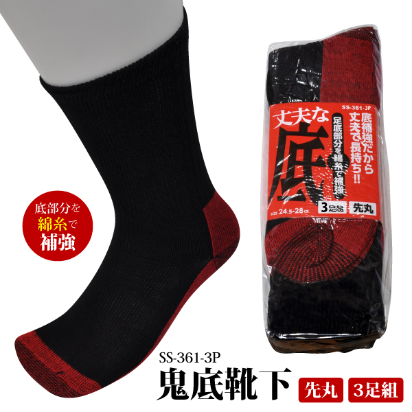 作業靴下 先丸 メンズ 24.5-28.0cm SS-361-3P 鬼底靴下 3足組 黒 新生活 作業靴下 メール便対応