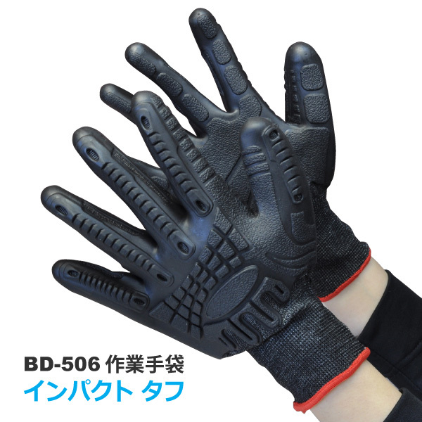 即日発送可 作業用手袋 振動防止手袋 衝撃吸収手袋 メンズ M-Lサイズ 富士グローブ BD-506 インパクトタフ TPEコーティング メール便対応