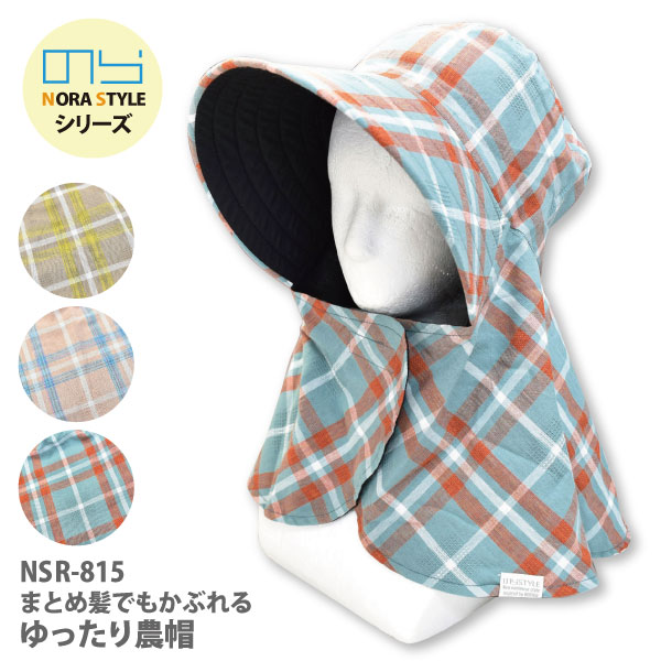 農園帽子 農園フード 大きいサイズ レディース 即日発送可 NORA STYLE/のらスタイル NSR-815 まとめ髪でもかぶれるゆったり農帽 フード メール便対応