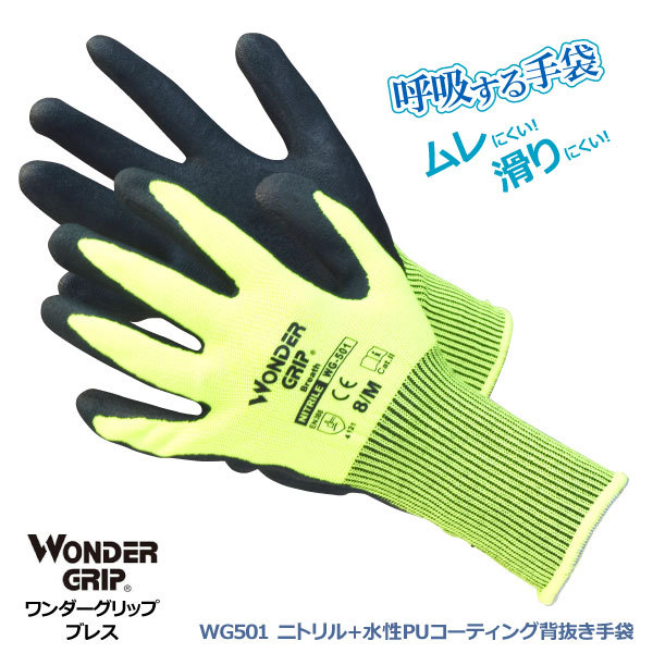 作業用手袋 背抜き手袋 メンズ M-XLサイズ ユニワールド WG501 WONDER GRIP ブレス 農作業 荷役作業 一般軽作業 DIY メール便対応