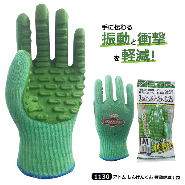 アトム 作業用手袋 振動軽減手袋 背抜きタイプ メンズ レディース S-Lサイズ 1130 しんげんくん 草刈作業 現場作業 メール便対応