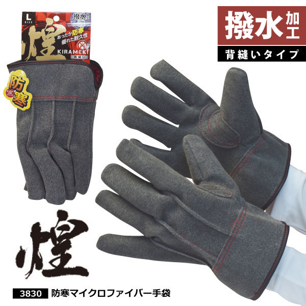 即日発送可 作業用防寒手袋 メンズ Lサイズ 背縫いタイプ ユニワールド 煌/きらめき 3830 防寒マイクロファイバー手袋 軽撥水加工 メール便対応