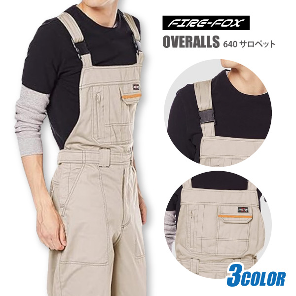 オーバーオール メンズ レディース SS-4Lサイズ 即日発送可 オールシーズン コーコス FIRE-FOX 640 サロペット 胸ポケット付 シンプル 在庫限り