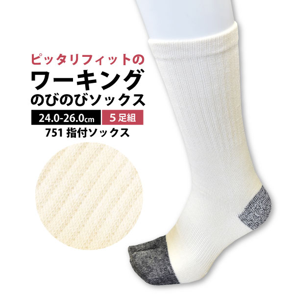 作業靴下 指付 タビ型 5足組 メンズ 24.0-26.0cm おたふく手袋 751 ピッタリフィットのワーキングソックス キナリ 日本製