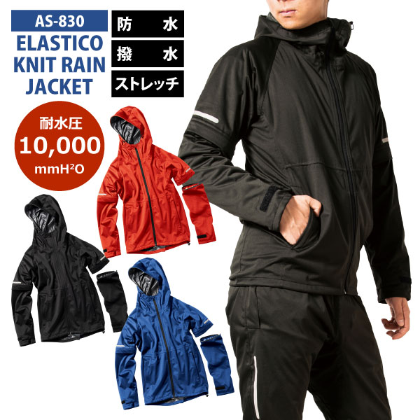レインウェア メンズ レディース S-4Lサイズ 即日発送可 Makku/マック AS-830 エラスティコニット レインジャケット 耐水圧10,000mmH2O 在庫限り