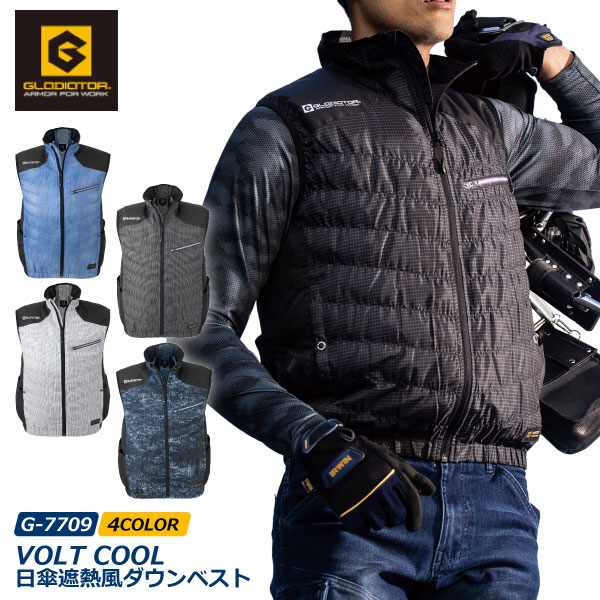 コーコス 空調作業服 メンズ SS-5Lサイズ 即日発送可 グラディエーター G-7709 ボルトクール 日傘遮熱風 ダウンベスト ベストのみ 熱中症対策 メール便対応