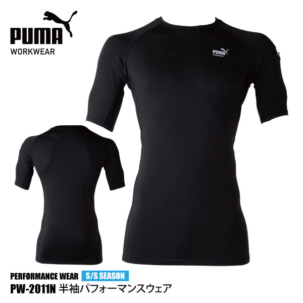 一部即日発送可 プーマ ワークウェア コンプレッション 夏用 インナー メンズ PW-2011N 作業ウェア PUMA 半袖パフォーマンスウェア 接触冷感 メール便対応