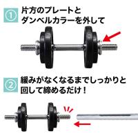 バーベルは装着時のイメージです。販売はダンベルシャフト用パーツのみとなります。プレート、ダンベルシャフト、バーベルは付属しません。