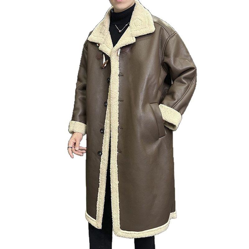 【ロング丈】ガウンタイプなのでサッと羽織りやすく軽くて暖か!フェイクファーで保温性いい、着る次第にすぐ暖かくなり、冷気の防ぎで完璧!柔らかくて、肌触りが良いのフェイクフォックスファー素材に採用して、見た目も着心地も暖かく、綺麗なシルエットの設計感があり、上品な雰囲気が魅力のファーコート メンズ ロングコートです!