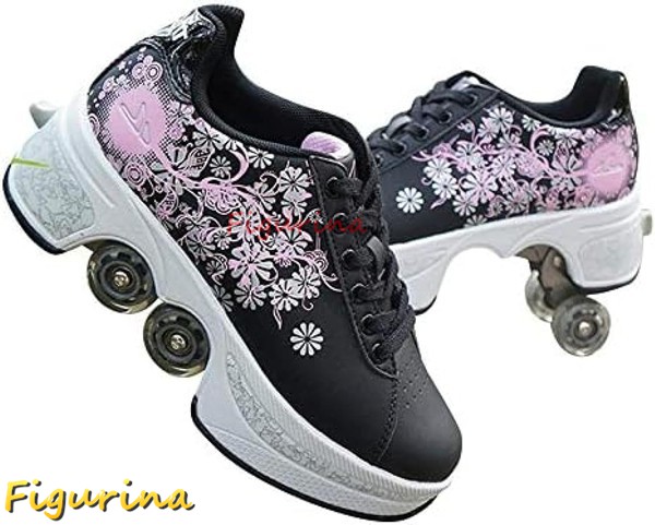 ローラーシューズ ローラースケート 女性 男性用 4輪 自動ウォーキングスケート クワッドローラースケート ブーツ 変形 大人 子供