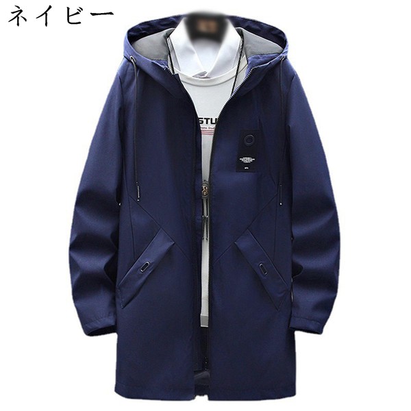 ジャケット メンズ ロング丈 ベンチコート フード付 カジュアル スプリングコート ジャンパー 長袖 春秋 アウター お洒落 薄手 防風
