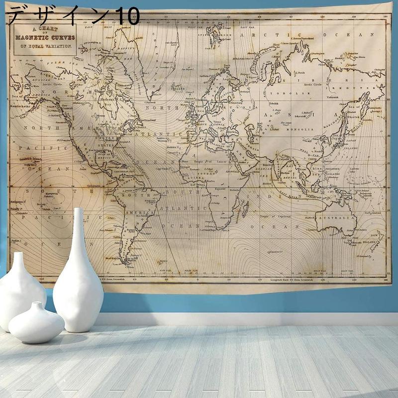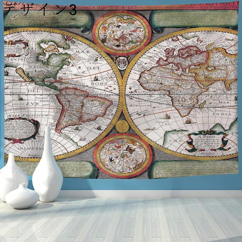 視覚インパクト:ヴィンテージ風のデザインとして、世界地図をモチーフにした歴史感がいっぱい溢れているタペストリーです。掛けた瞬間空間の雰囲気を一気にイメージチェンジ!間仕切りに使っても季節や気分で掛け替えてもOK!