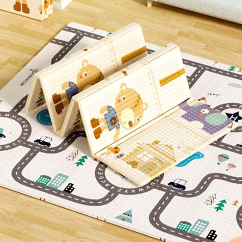 ベビープレイマット 折り畳み式 可愛い 両面パターン 遊び フロアマット 衝撃緩和 転倒防止 ルームマット 滑り止め 防水 赤ちゃん