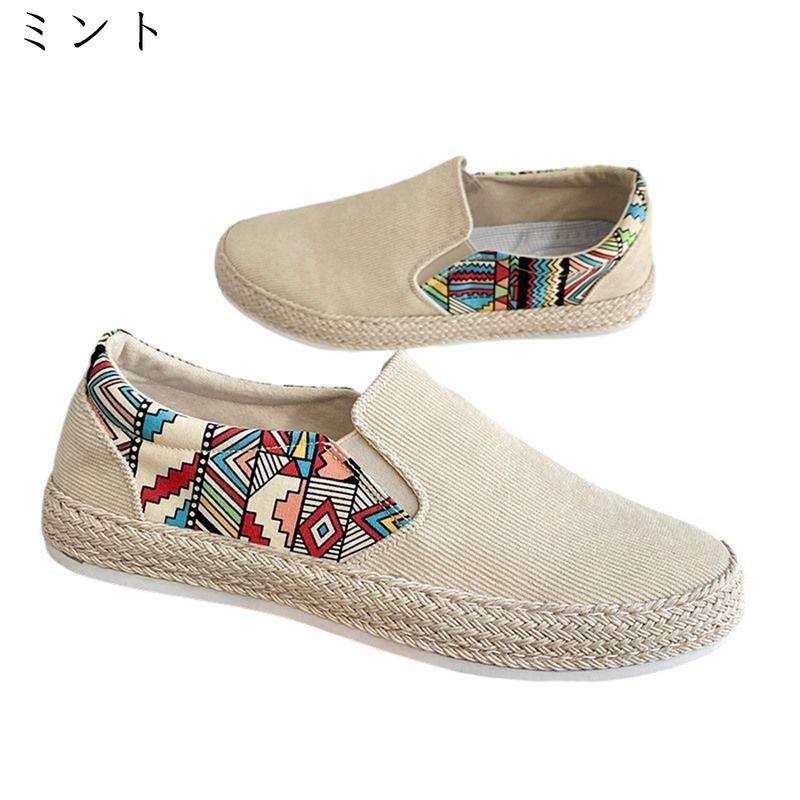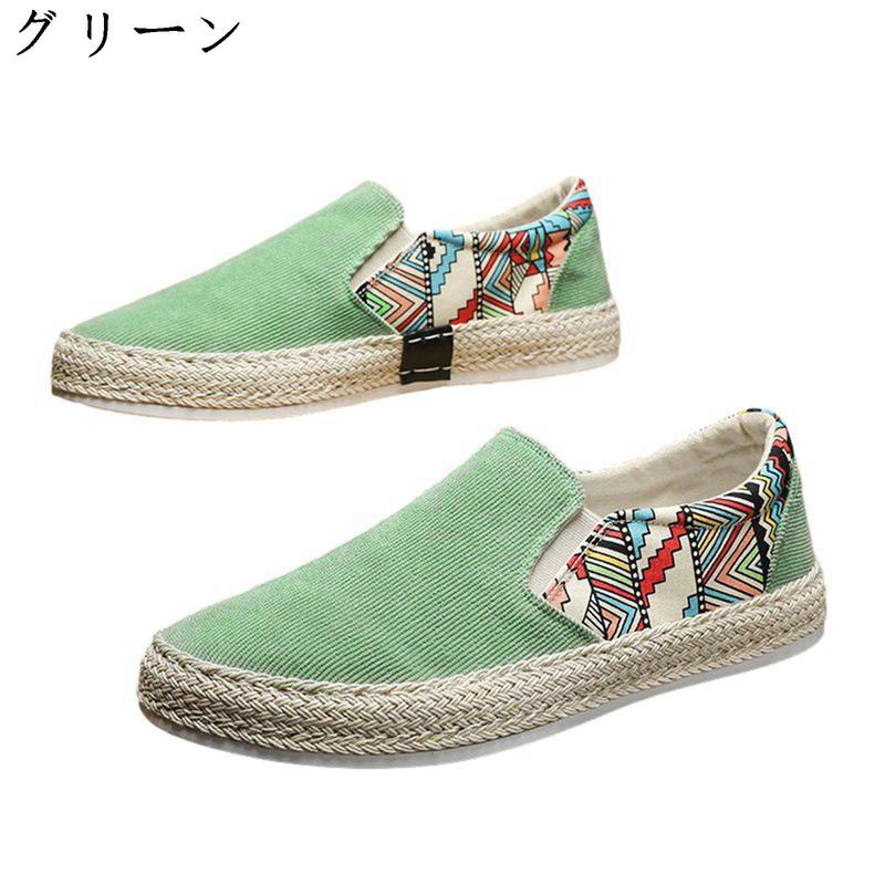特色について◎シンブルなデザイン、さまざまなファッション衣服に合わせやすい、大人気の全方位のスリッポンシューズです。◎涼しげなキャンバス生地ベースにジュート巻き素材でラフな風合いが足元からシーズンムードを盛り上げます!◎つかれにくく弾力のある、衝撃吸収コンポジットソールを採用!足当たリ良く、履き心地良好。素足に心地よりサラリとした感触で心地よい。◎通気性が良く吸水?吸湿性に優れていて熱を逃がす、汗をかいても肌に張り付かない麻の特性から、サンダルじゃないのに夏の足元が快適だからつい履きたくなる靴です。◎柔らかい素材を採用して、柔軟性が良い。クッションインソールを採用し、歩行運動の疲労を緩和するのに役立ちまして、長く歩いても疲れにくいです。
