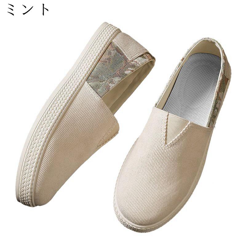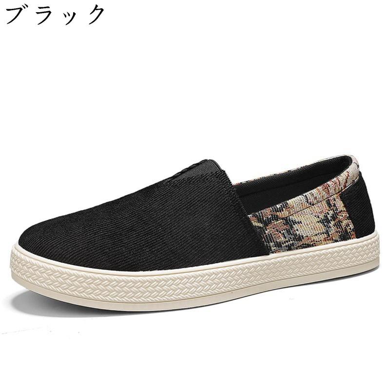 スリッポン メンズ フラット キャンパスシューズ ローカット バイカラー エスパドリーユシューズ スニーカー 春夏秋 綿麻 通気 おしゃれ