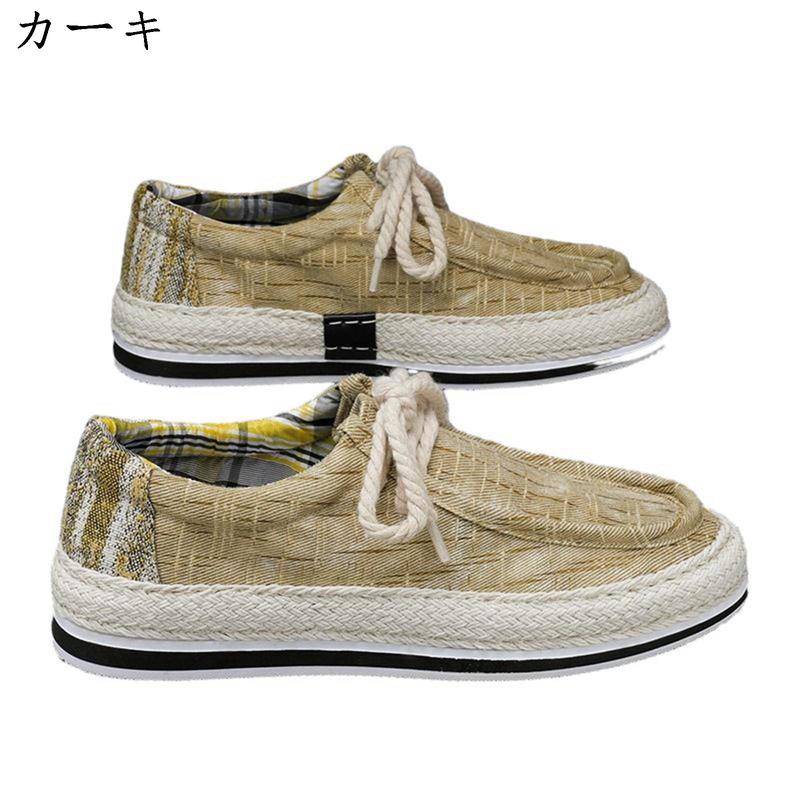特色について◎シンブルなデザイン、さまざまなファッション衣服に合わせやすい、大人気の全方位のスリッポンシューズです。◎涼しげなキャンバス生地ベースにジュート巻き素材でラフな風合いが足元からシーズンムードを盛り上げます!◎つかれにくく弾力のある、衝撃吸収コンポジットソールを採用!足当たリ良く、履き心地良好。素足に心地よりサラリとした感触で心地よい。◎通気性が良く吸水?吸湿性に優れていて熱を逃がす、汗をかいても肌に張り付かない麻の特性から、サンダルじゃないのに夏の足元が快適だからつい履きたくなる靴です。◎柔らかい素材を採用して、柔軟性が良い。クッションインソールを採用し、歩行運動の疲労を緩和するのに役立ちまして、長く歩いても疲れにくいです。