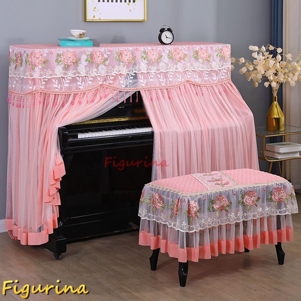 ピアノカバー アップライトピアノカバー 両開き 標準直立型ピアノ用 フルカバー 花の刺繍 レース フリル付き 優雅 欧風 ピアノ掛け 遮光