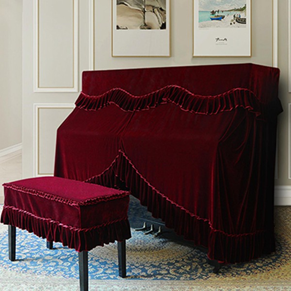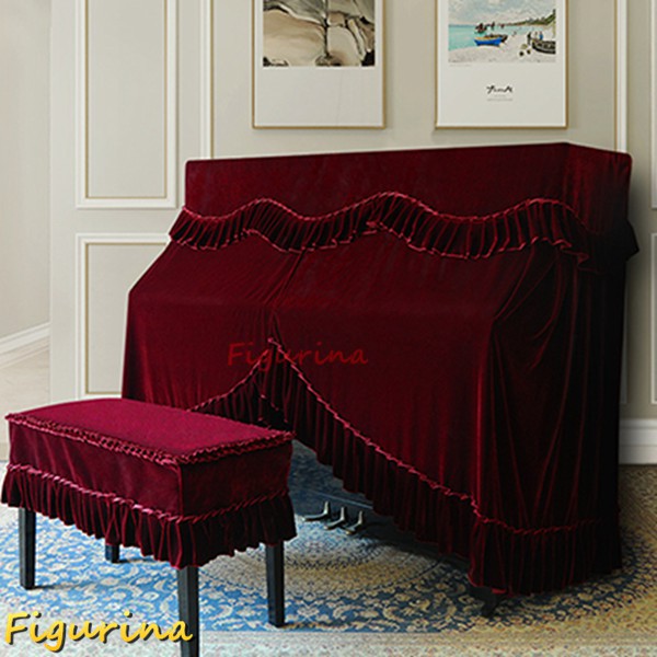 ピアノカバー ベルベット アップライト フルカバー 標準 直立型 クラシック フリル付き おしゃれ ヨーロピアン調 ピアノ掛け 遮光 防塵