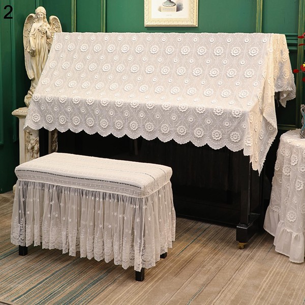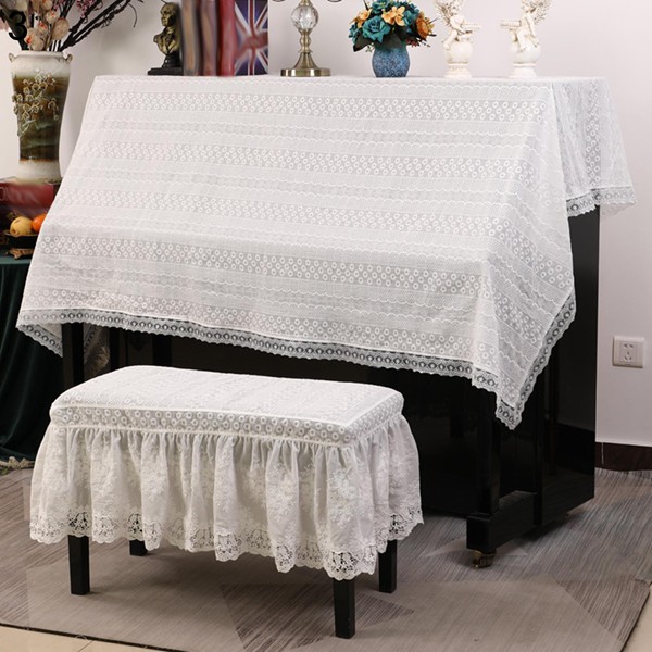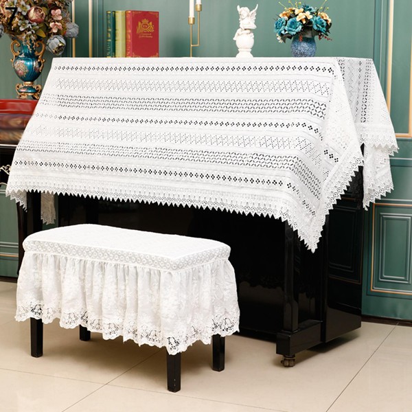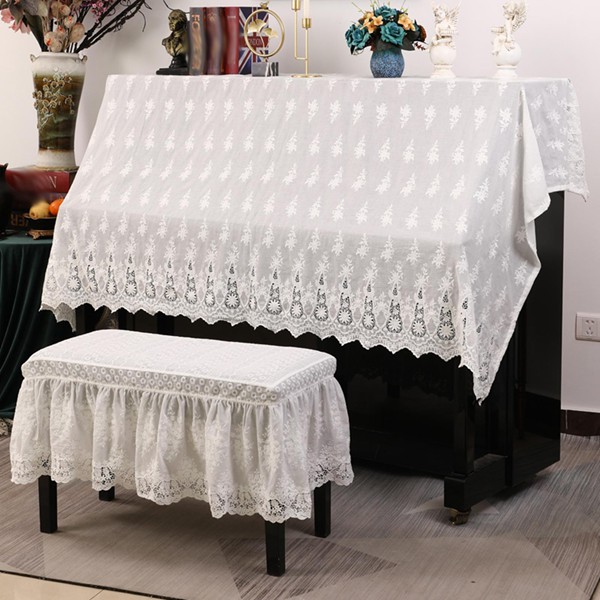【仕様】周囲は繊細な花模様のレースで縁取りされ、華やかで上品な雰囲気になります。独特の外観でしわになりにくてよい懸垂感を持つ。大切なピアノの保護をしつつ、お部屋のアクセントにもなる素敵なアイテムです。