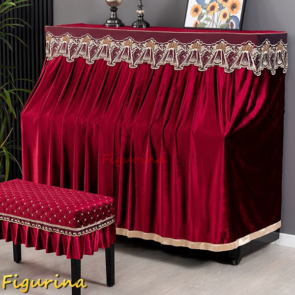ピアノカバー アップライト フルカバー 厚手 トップカバー 標準 直立型 欧風 フリル付き ベルベット レトロ ヨーロピアンスタイル
