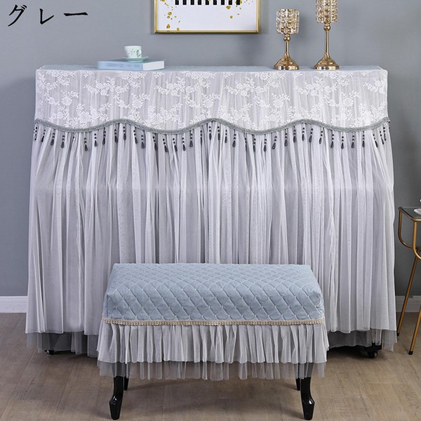 ピアノカバー アップライト 両開き フルカバー 標準直立型ピアノ用 北欧 レース フリル フリンジ付き エレガント ヨーロッパ風 汚れ防止