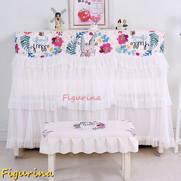 ピアノカバー アップライト 両開き フルカバー 標準直立型ピアノ 優雅 レース フリル 花柄 おしゃれ ヨーロピアン調 ピアノカバー