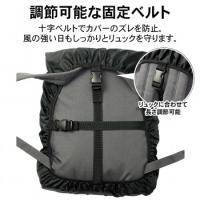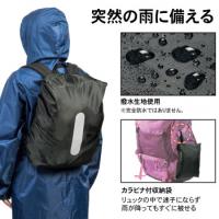撥水生地使用で、急な雨からリュックを守ります。夜間でも認識されやすい反射テープ付で安心。裏側には調整可能な固定ベルト付なのでズレを防止します。通勤や通学、アウトドアや山登りにも。