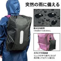 撥水生地使用で、急な雨からリュックを守ります。夜間でも認識されやすい反射テープ付で安心。裏側には調整可能な固定ベルト付なのでズレを防止します。通勤や通学、アウトドアや山登りにも。