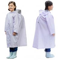 ランドセルを背負ったまま着用できる背マチ付きはっ水レインコート。透明ひさしで視界良好。携帯に便利な収納袋付き。