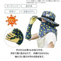 ガーデニング、農作業、草取り、洗濯物干しにおすすめです。肘まで届く長さでしっかり日差しをガードします。手のひらは滑り止め加工付きで安心です。袖のズレ落ちや汚れを防ぐこともできます。