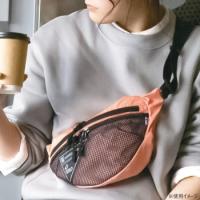 カジュアルなスタイルにぴったりなボディバッグは、アウトドアシーンで大活躍。ポケットもいっぱいで見た目以上の収納力があります。メインポケットを含めてポケットは全部で4つ。前面のメッシュポケットにはチラ見せしたいアイテムを忍ばせてもOK。裏面にも通気性抜群のメッシュポケットが付いているので、マスクなどを入れて使うのもおすすめ。メインポケット内にはオープンポケットが1つ。小物を分けて収納できます。