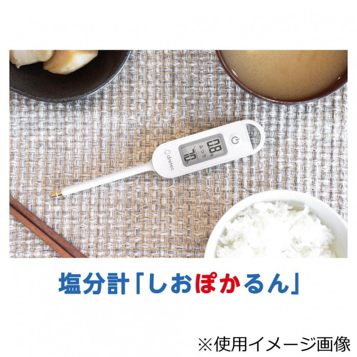 | 気になるけど、面倒でついつい目分量になっている塩分量。身近なものの塩分量や1日の摂取量を電源を入れて、測定物にセンサーを漬けるだけで測れます。また、同時に温度がはかれるので、お子さまや高齢者の食事ケアにもおすすめです!面倒な操作は不要だから、毎日続けられます。塩分濃度を光で3色のLEDで味付け判定します。壁掛けに便利なフック付です。 ※IPX2とは、傾斜15度の範囲で落ちてくる水滴に対して製品としての性能を保つことです。 |
