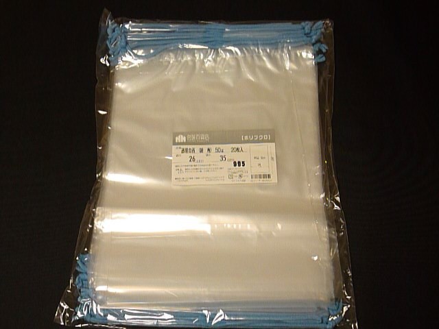 透明巾着袋 透明ポリ巾着袋 透明ビニール巾着袋 紐:青 サイズ260×350(底マチ80ミリ) 20枚パック/セット