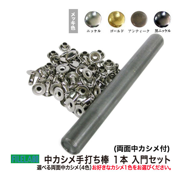 品 名:手打ち工具入門【中カシメ用】 サイズ:手打ち棒 104.8×12.1mm 重さ約91g 材 質:鉄製 詳 細:打棒1本+お好きな両面中カシメ6セット ご注意ください:工具類は、消耗品のため開封・未開封に 関わらず返品交換いたしかねますので、 ご確認の上ご購入いただきますようお願い致します。 当店の工具類は、当店の金具に合わせて作っております。 ご使用の際には、当店の金具をご利用ください。 ■FILELABOファイルラボの手打ち工具入門 カシメ用 手打ち工具入門は、棒の窪みが中カシメに合わせた大きさとなっています。両面中カシメが打てる、お手頃価格の手打ち工具です。手打ち工具でキレイに打つには練習が必要です。 ご使用の際には、手を傷めないようご注意ください。 ●中カシメの取り付け方 1.取付ける布や革に、穴あけポンチなどの工具で中カシメの足を通す穴(直径3mmの穴)をあける。 2.穴を開けた布や革に、中カシメの足を通します。 両面カシメの場合は、頭の丸みにあった窪みがある台(連皿など)を利用して、中カシメを台の上にセットします。 3.足の上から布などを挟み、カシメの頭をかぶせます。 4.中カシメの打棒を、カシメ頭にあてます。カシメ打棒は垂直に立てて木槌を上からしっかり叩いてください。 5.カシメ足が頭の中で潰れ(カシメられ)止まります。 |