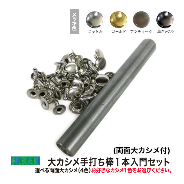 品 名:手打ち工具入門【大カシメ用】 サイズ:手打ち棒 104.8×12.1mm 重さ約91g 材 質:鉄製 詳 細:打棒1本+お好きな両面大カシメ6セット ご注意ください:工具類は、消耗品のため開封・未開封に 関わらず返品交換いたしかねますので、 ご確認の上ご購入いただきますようお願い致します。 当店の工具類は、当店の金具に合わせて作っております。 ご使用の際には、当店の金具をご利用ください。 ■FILELABOファイルラボの手打ち工具入門 カシメ用 手打ち工具入門は、棒の窪みが中カシメに合わせた大きさとなっています。両面中カシメが打てる、お手頃価格の手打ち工具です。手打ち工具でキレイに打つには練習が必要です。 ご使用の際には、手を傷めないようご注意ください。 ●大カシメの取り付け方 1.取付ける布や革に、穴あけポンチなどの工具で大カシメの足を通す穴(直径4mmの穴)をあける。 2.穴を開けた布や革に、大カシメの足を通します。 両面カシメの場合は、頭の丸みにあった窪みがある台(連皿など)を利用して、大カシメを台の上にセットします。 3.足の上から布などを挟み、カシメの頭をかぶせます。 4.大カシメの打棒を、カシメ頭にあてます。カシメ打棒は垂直に立てて木槌を上からしっかり叩いてください。 5.カシメ足が頭の中で潰れ(カシメられ)止まります。 |