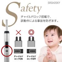 風で消えないので、アウトドア等で大活躍!チャイルドロック付きでお子様がいても安心!電池残量インジケーター付き!