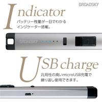 【充電式&電池残量表示機能】充電タイプのライターなので繰り返しご使用していただけます、また、本体のLEDランプで電池残量がわかるため充電のタイミングがわかりやすくなっています。