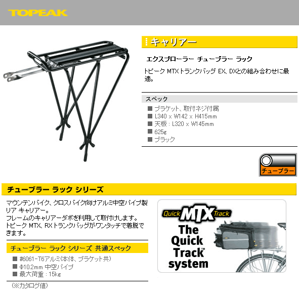 ●トピーク チューブラー ラック シリーズ 共通スペック