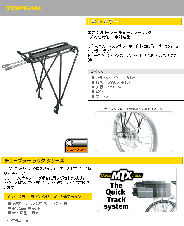 TOPEAK トピーク エクスプローラーチューブラーラック ディスクブレーキ対応 CAR15900
