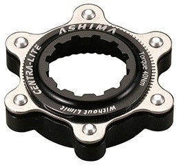 シマノなどのセンターロック式ハブにも、6 穴ディスクローターが装着可能になるアダプター。9mm アクスル対応のライトと、15mm/20mmアクスル対応のXLをラインナップしています。